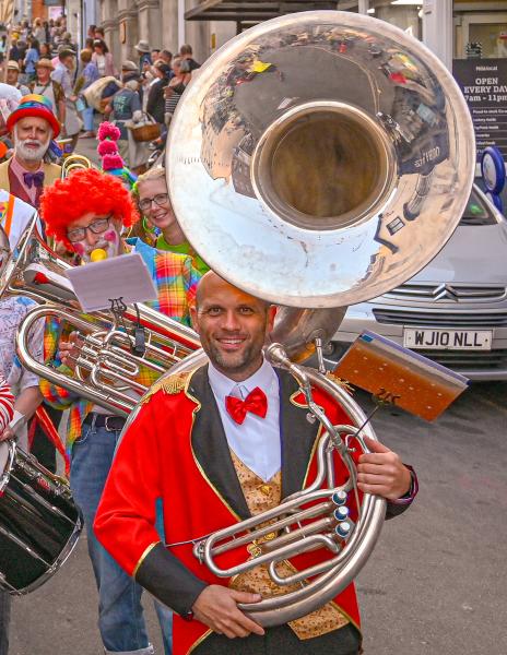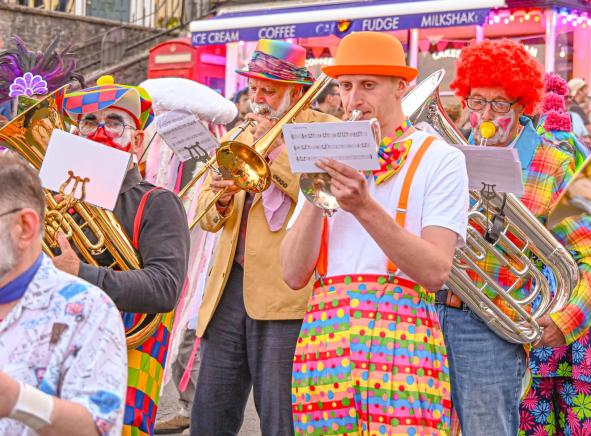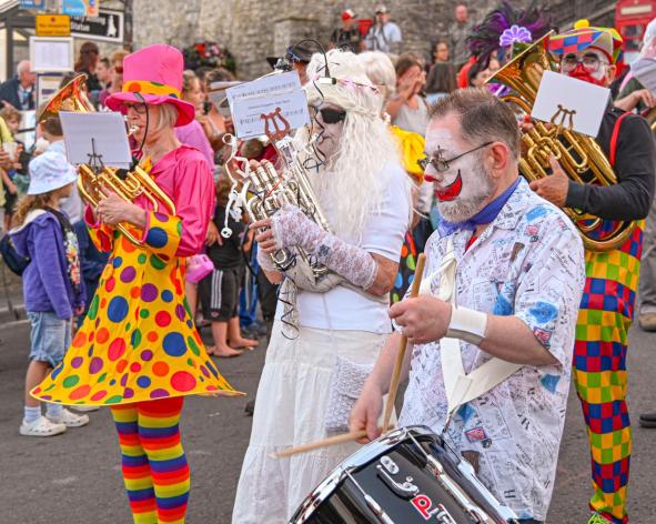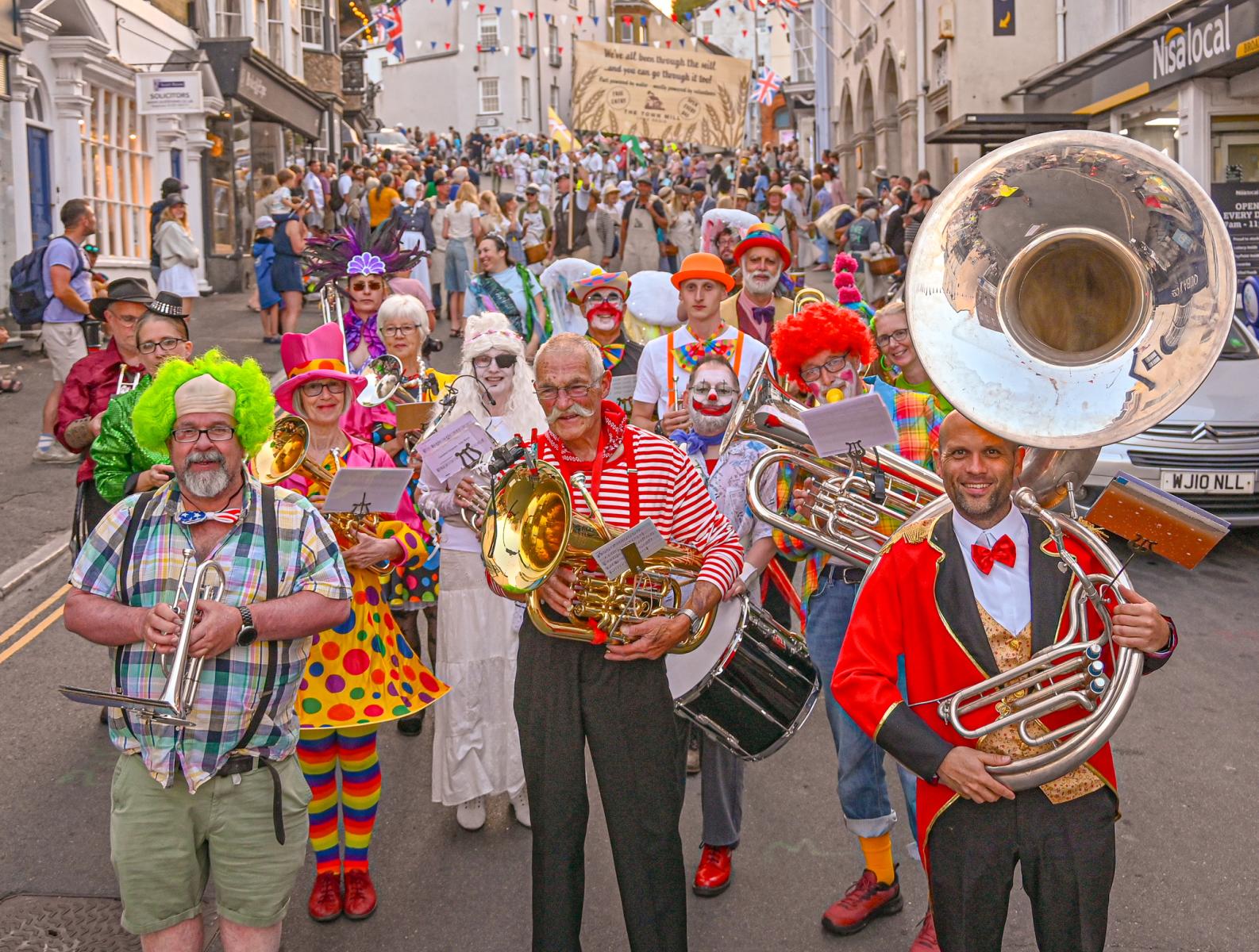 The band stepped out of their comfort zone last night, delivering a brilliant performance in the Lyme Regis Carnival procession. We’re thrilled to have been awarded 1st in the local groups and organisations category with our vibrant circus-themed entry.